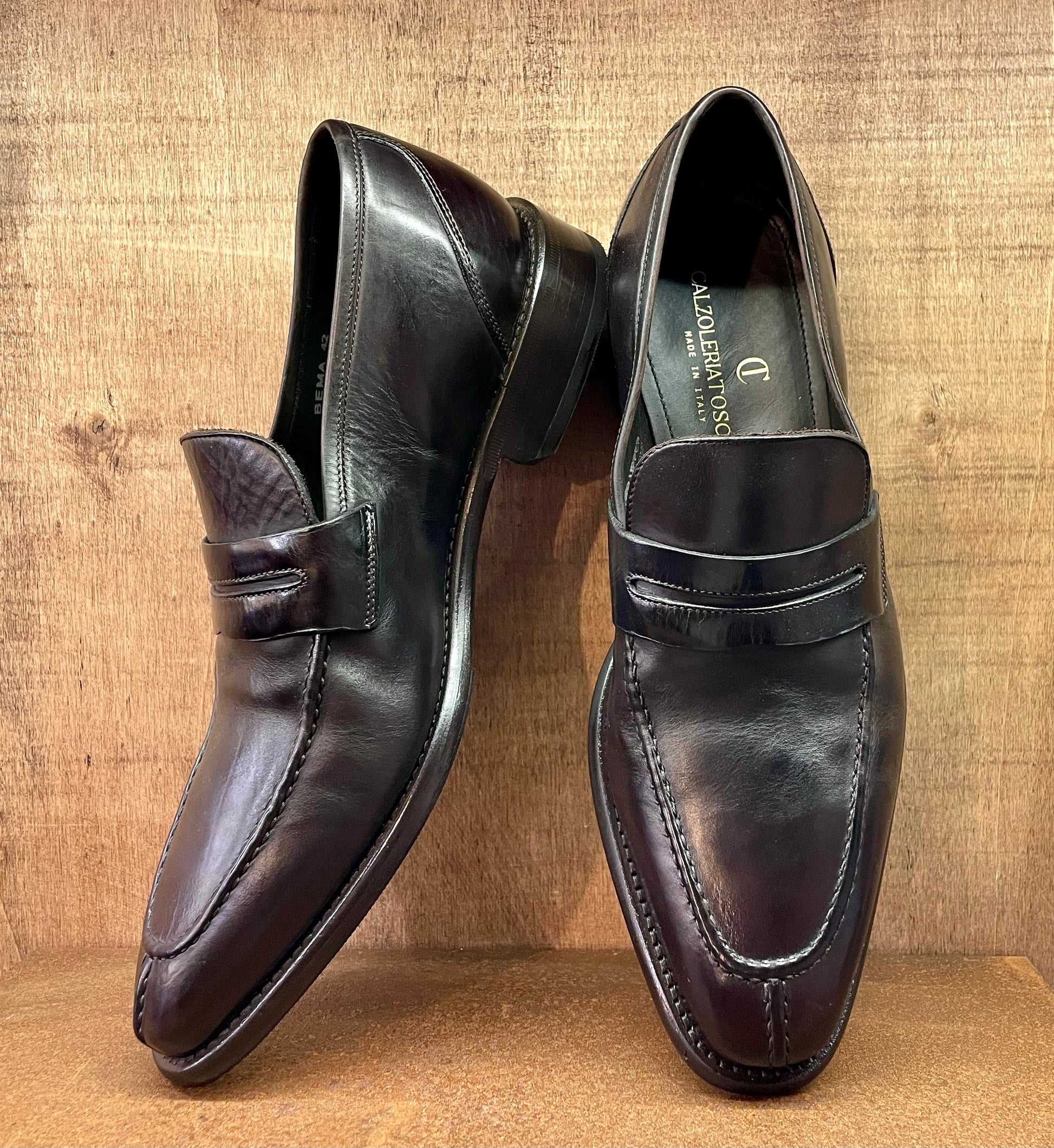 Ideato e realizzato interamente in Italia. Questo speciale mocassino combina eleganza e resistenza grazie alla tomaia in vitello e alla suola in cuoio con piantella in gomma Vibram, che garantisce maggiore aderenza e comfort. Il lavaggio in speciali vasche con tecnica Stone Washed aggiunge un tocco distintivo, rendendolo perfetto per un look business sofisticato o occasioni formali. Tomaia e fodera in vitello naturale, la lavorazione Blake assicura resistenza, flessibilità e leggerezza grazie a un'unica cucitura che unisce tutti gli elementi della scarpa. Per piedi magri, scegliere un numero in meno; per piedi larghi o con collo alto, optare per la misura abituale. Manutenzione: Spazzolare delicatamente e applicare cere o creme naturali per mantenere la brillantezza. Rifinire lucidando con un panno morbido.