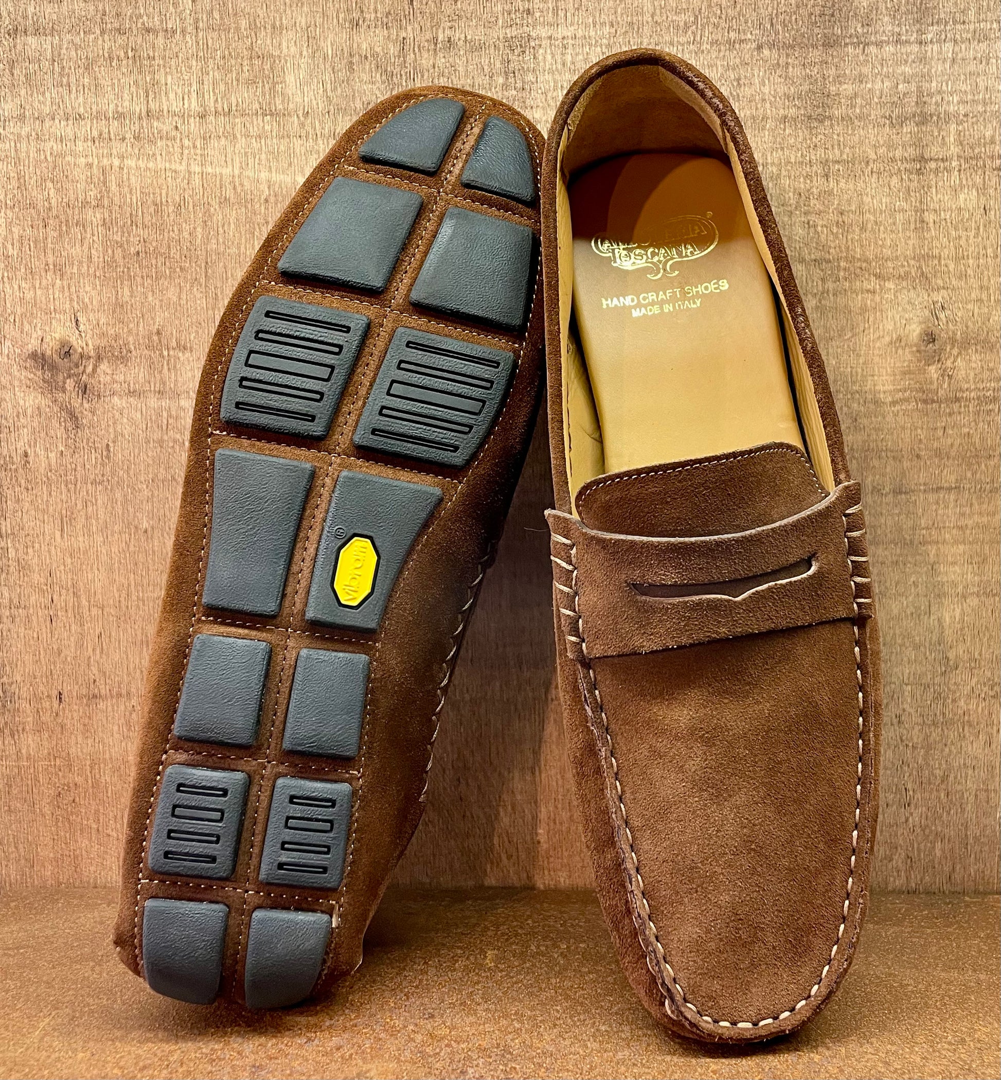 Ideato e prodotto interamente in Italia. Mocassino in morbida pelle di vitello scamosciato, cuciture realizzate a mano dai nostri artigiani. Suola in speciale gomma Vibram super flessibile e resistente.  Una scarpa adatta sia in contesti casual che eleganti, si contraddistingue per il suo estremo confort. Fatte con passione per durare nel tempo. Se avete un piede standard il nostro consiglio è di optare per una taglia in meno, se invece siete caratterizzati da pianta larga o collo alto, potrete scegliere la vostra taglia abituale. Cesena vi calzerà perfettamente.