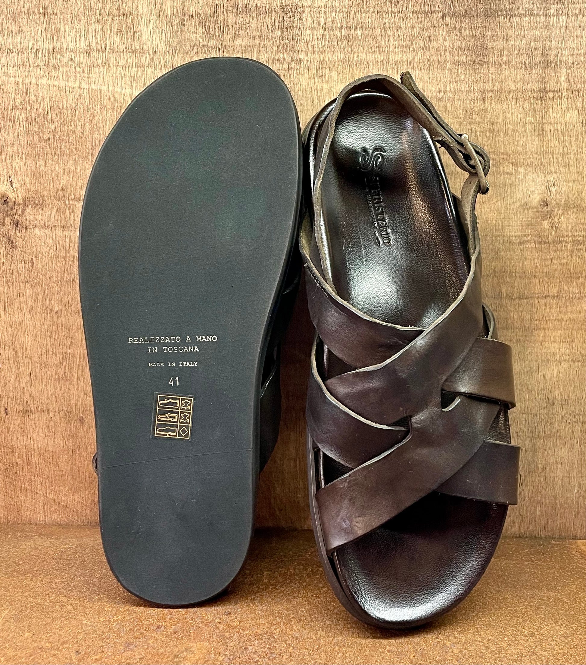 Interamente realizzato in Italia dai nostri artigiani, questo sandalo vi stupirà per il suo estremo confort. Realizzato in pelle di vitello conciata con tannini naturali, colorato con la tecnica del tuffato in botte e rifinito con suola in cuoio e sotto suola in gomma per garantire stabilità. Materiali pregiati ed un design attuale rendono il nostro sandalo adatto ad essere indossato in contesti sia casual che elegante-informale. Per un uso quotidiano o per la sera passeggiando magari lungo mare.