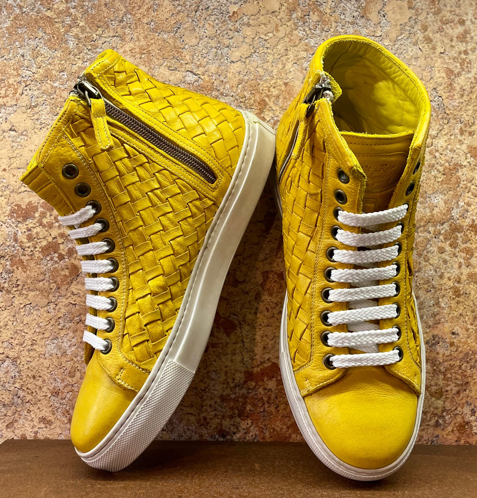 Interamente progettate e realizzate in Italia. Tomaia in vera pelle di bufalo intrecciata a mano, fodera interna in pregiata pelle di vitello naturale. Le nostre scarpe subiscono un processo di tintura in capo, ovvero, una volta realizzate vengono immerse in speciali vasche e lavate e colorate con sostanze di origine naturale. Il risultato si traduce in un prodotto unico, con un impronta vintage. Fatto con passione per durare nel tempo. Se avete un piede standard il nostro consiglio è di scegliere una taglia in meno. Se avete un piede con pianta langa o collo alto, potrete optare per la vostra taglia abituale.