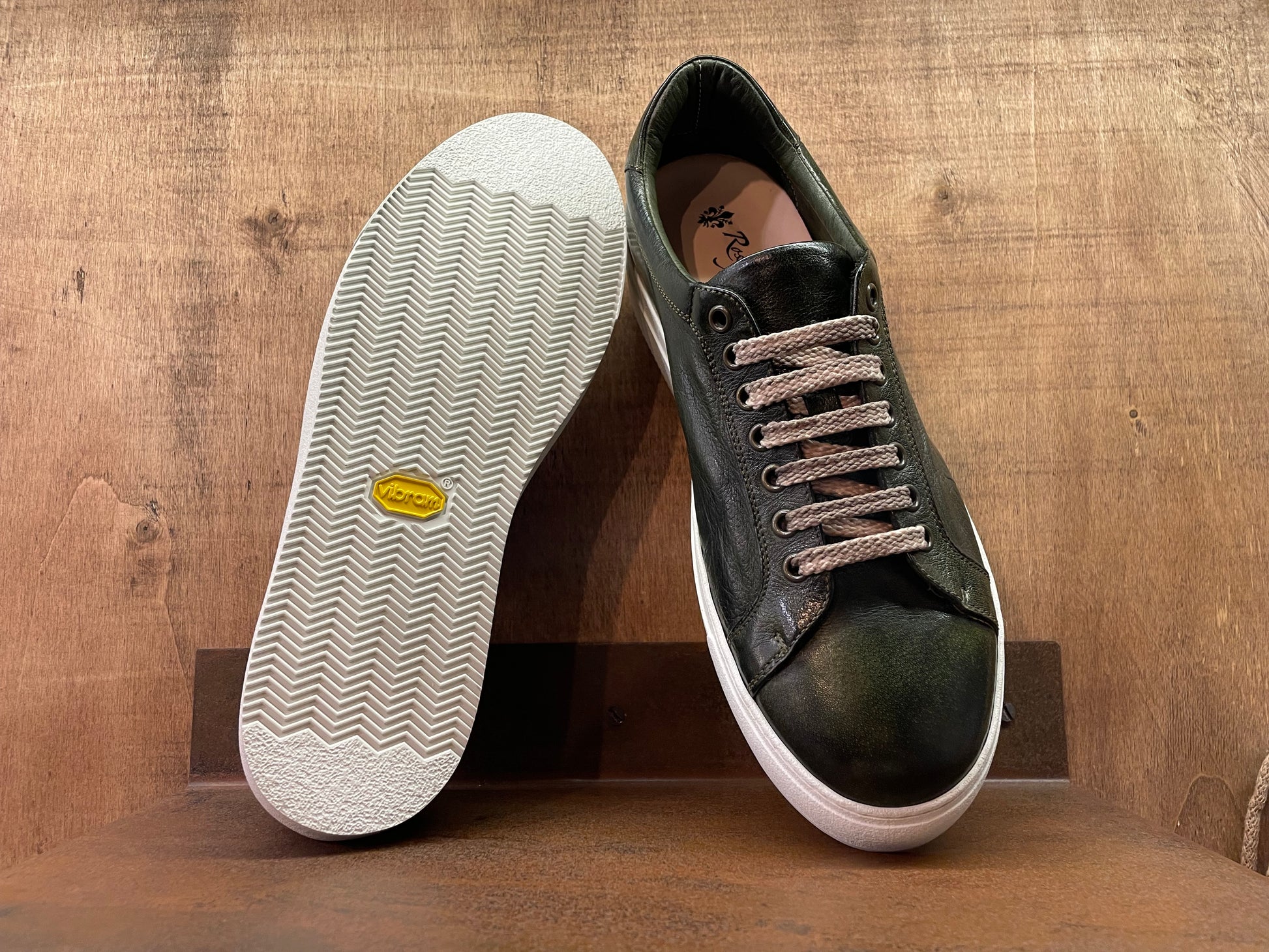 Interamente realizzate a mano dai nostri artigiani. Tomaia in morbida pelle di bufalo, fodera interna in vitello naturale. Le nostre sneakers nascono senza colore, successivamente vengono immerse in speciali vasche e lavate con sostanze di origine naturale così da conferire un aspetto vintage. Dotate di suoletta interna estraibile e quindi sostituibile nel tempo. Suola Vibram interamente cucita alla tomaia, cosi da garantire affidabilità e durata uniche. Se siete caratterizzati da un piede standard, il nostro consiglio è di optare per una taglia in meno. Se invece avete un piede con pianta larga, potrete scegliere la vostra taglia abituale.
