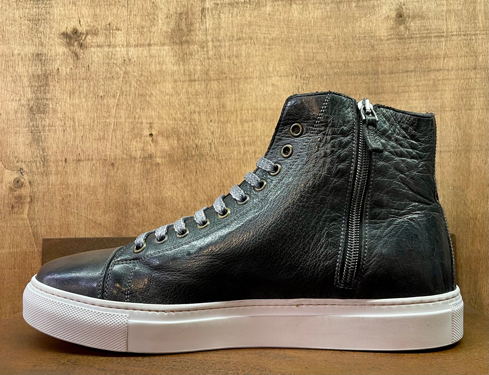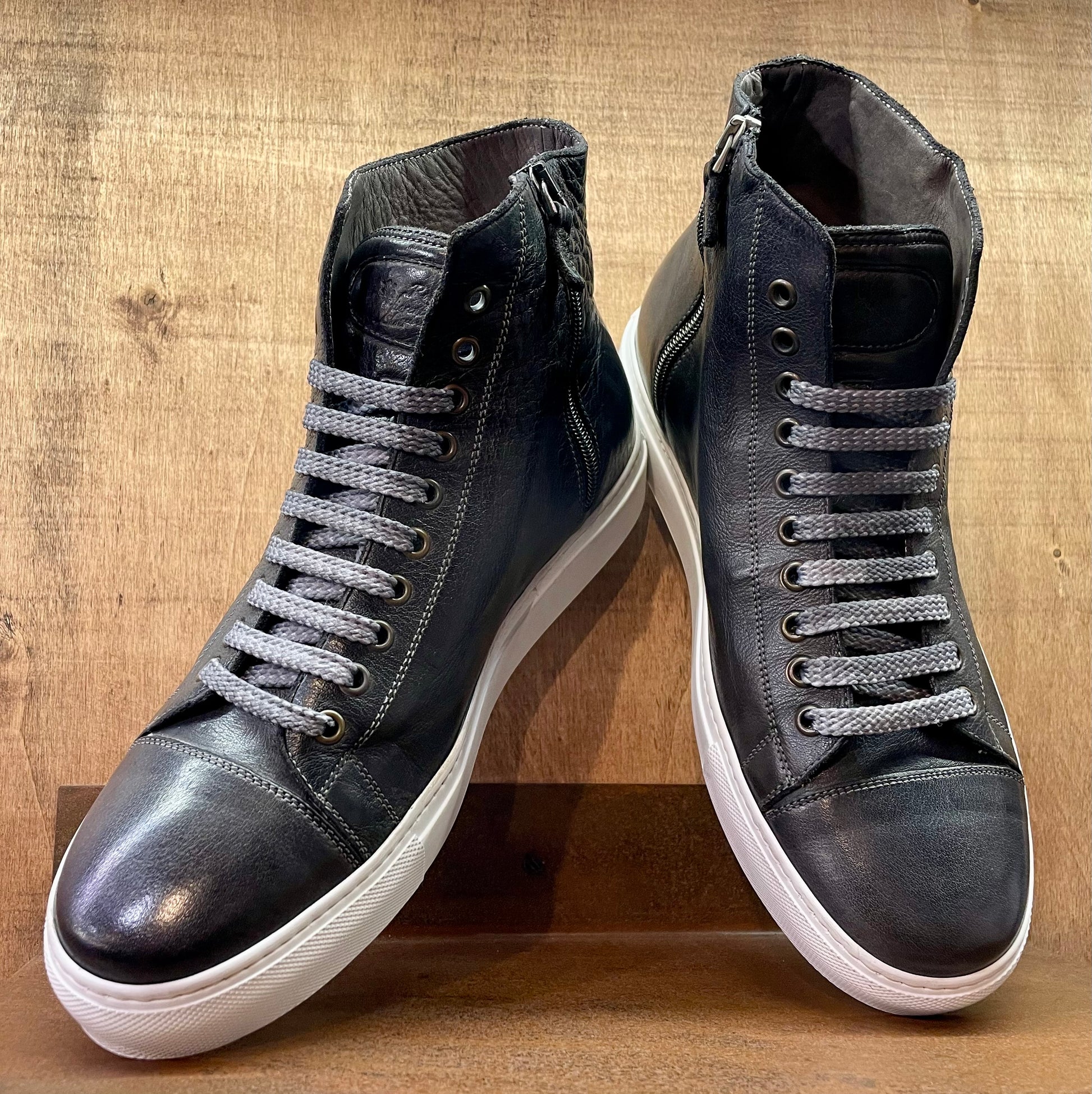 Interamente realizzate a mano dai nostri artigiani. Tomaia in morbida pelle di bufalo, fodera interna in vitello naturale. Le nostre sneakers nascono senza colore, successivamente vengono immerse in speciali vasche e lavate con sostanze di origine naturale così da conferire un aspetto vintage. Dotate di suoletta interna estraibile e quindi sostituibile nel tempo. Suola Vibram interamente cucita alla tomaia, cosi da garantire affidabilità e durata uniche. Se siete caratterizzati da un piede standard, il nostro consiglio è di optare per una taglia in meno. Se invece avete un piede con pianta larga, potrete scegliere la vostra taglia abituale.