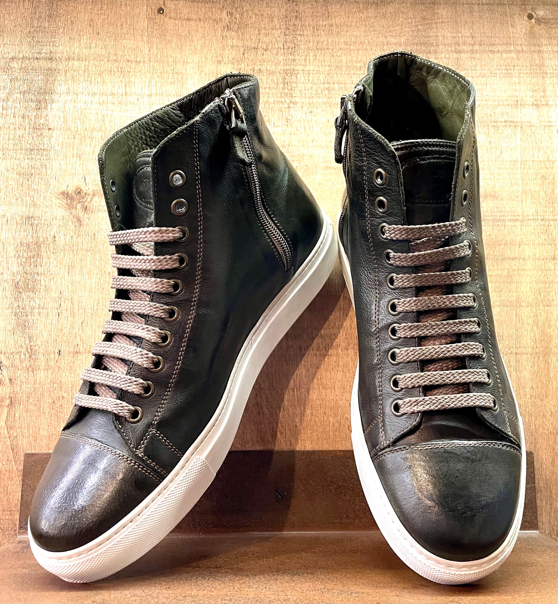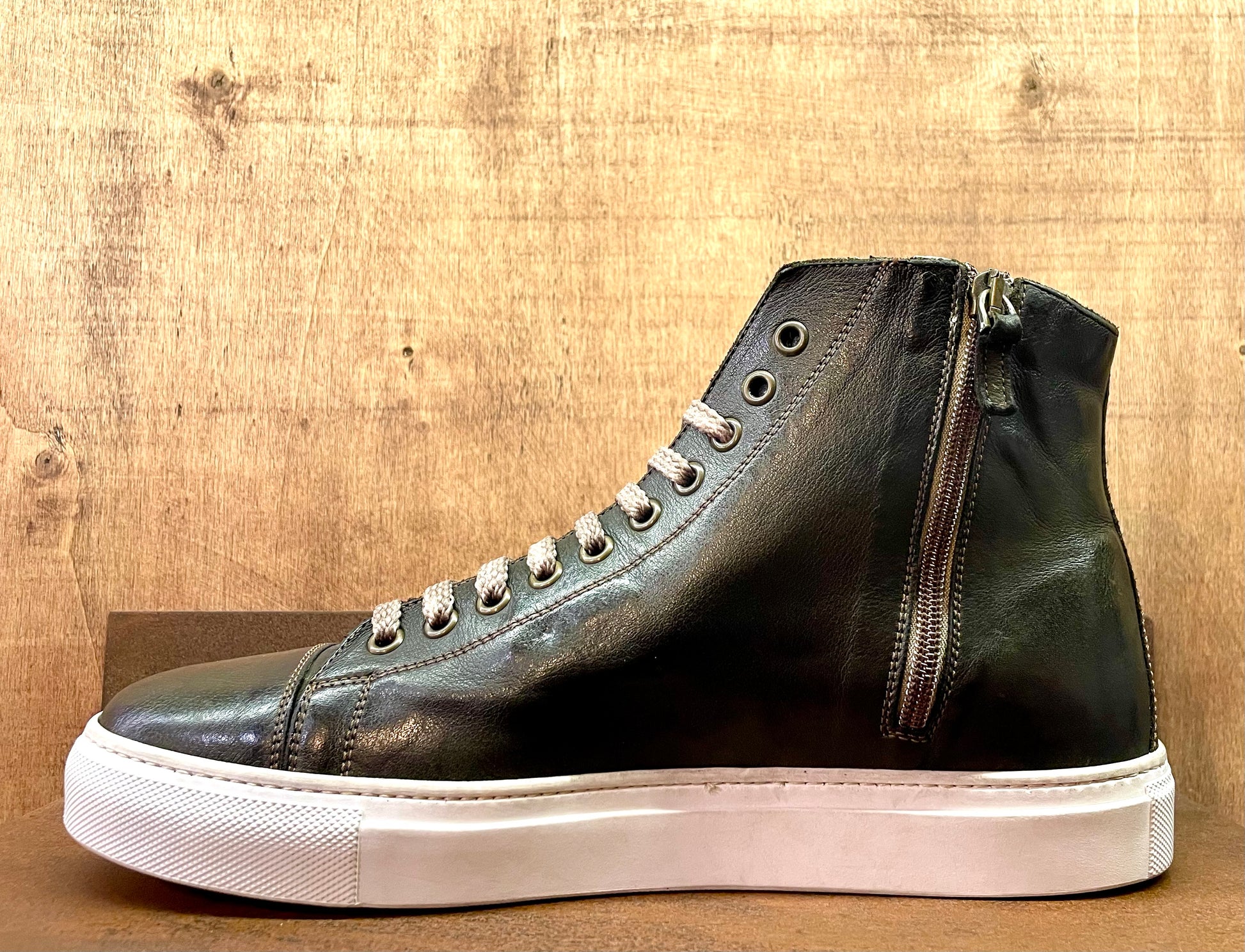 Interamente realizzate a mano dai nostri artigiani. Tomaia in morbida pelle di bufalo, fodera interna in vitello naturale. Le nostre sneakers nascono senza colore, successivamente vengono immerse in speciali vasche e lavate con sostanze di origine naturale così da conferire un aspetto vintage. Dotate di suoletta interna estraibile e quindi sostituibile nel tempo. Suola Vibram interamente cucita alla tomaia, cosi da garantire affidabilità e durata uniche. Se siete caratterizzati da un piede standard, il nostro consiglio è di optare per una taglia in meno. Se invece avete un piede con pianta larga, potrete scegliere la vostra taglia abituale.