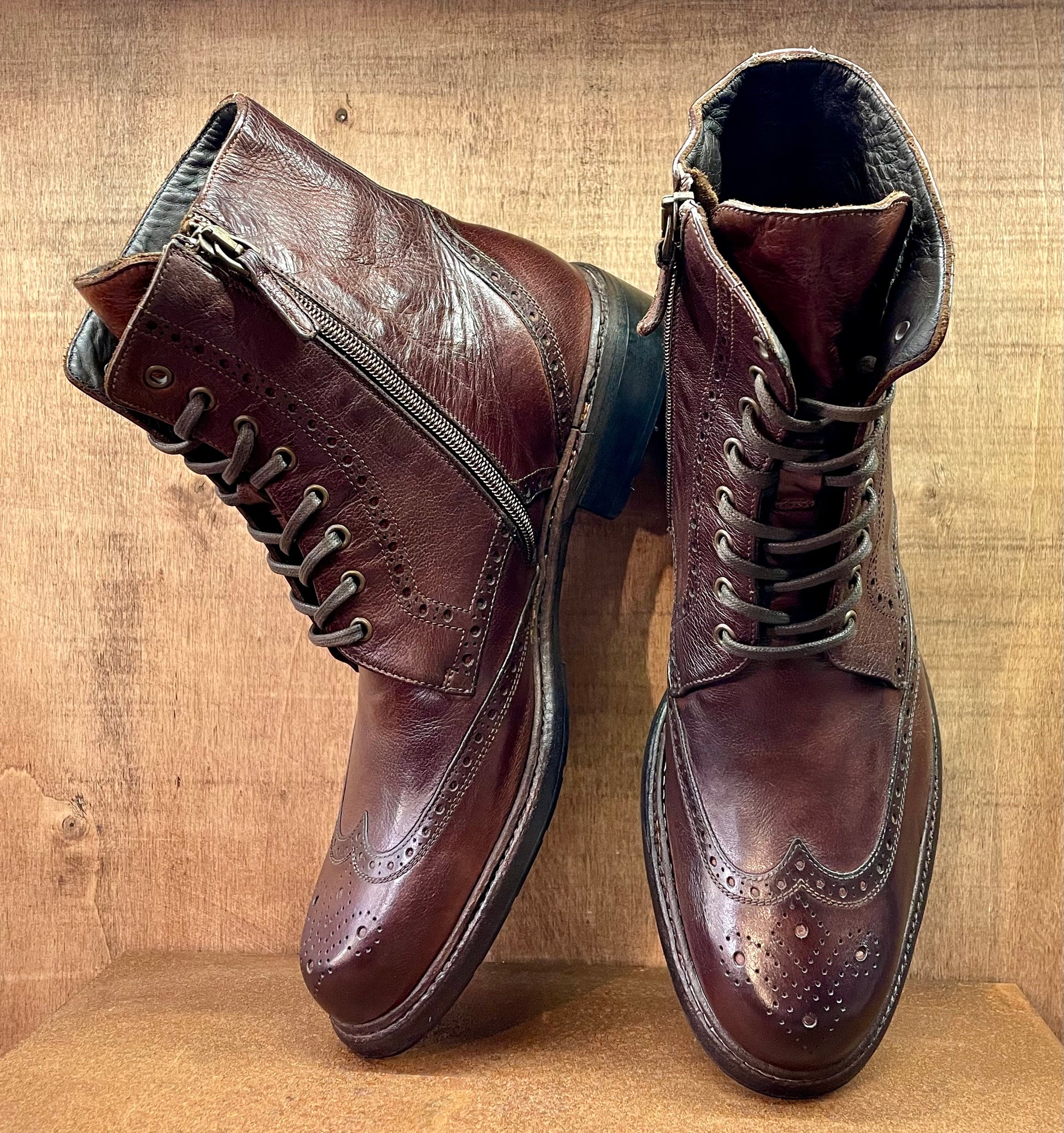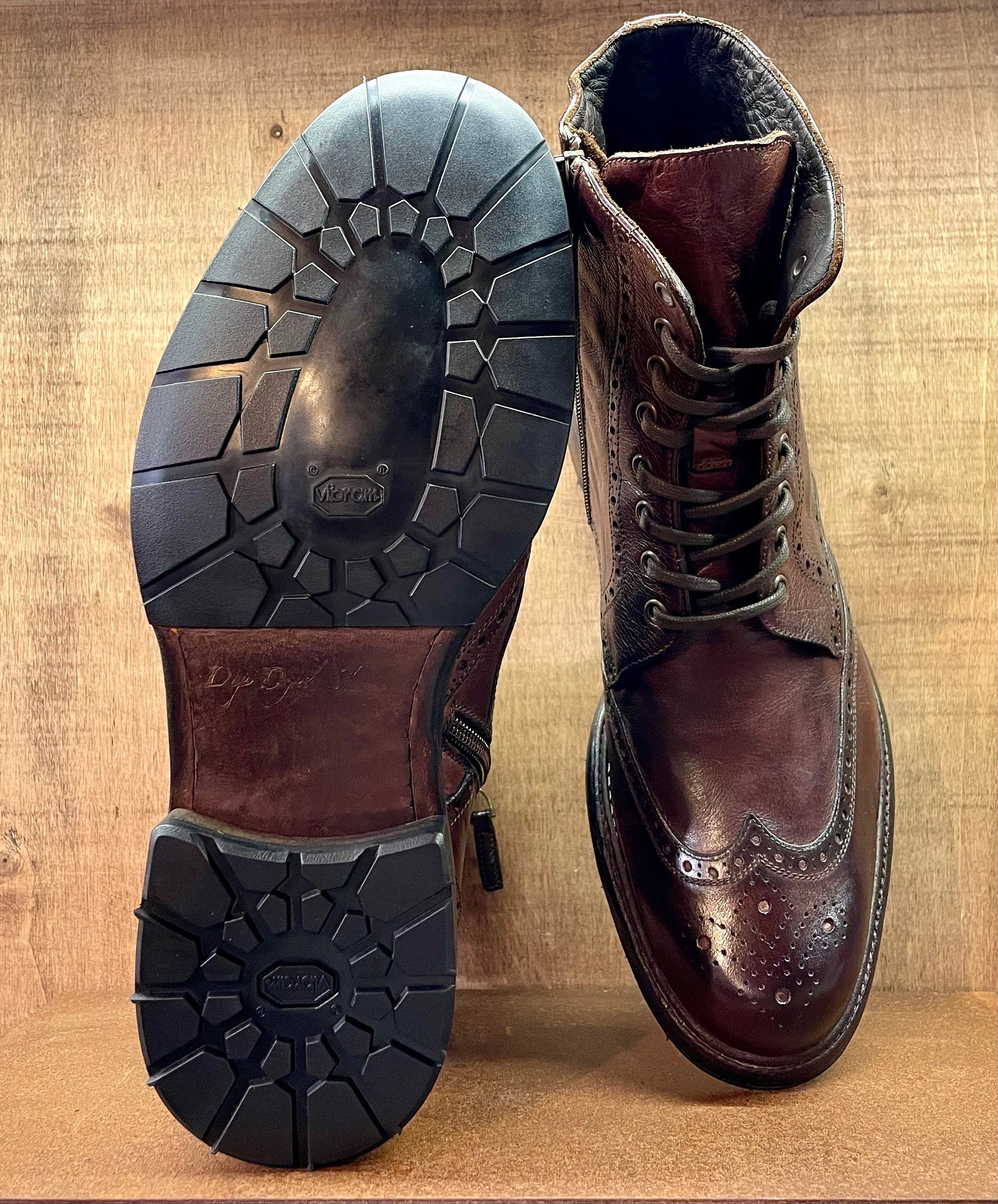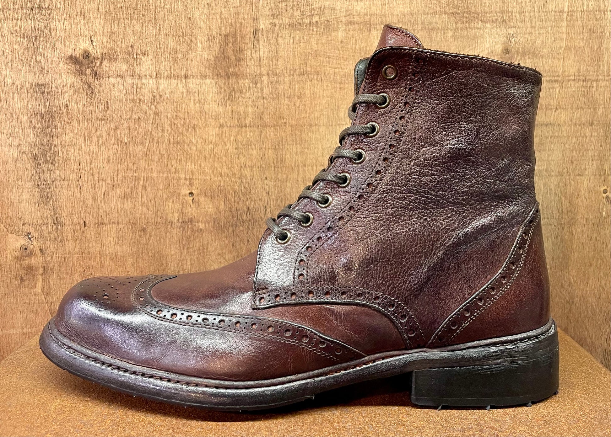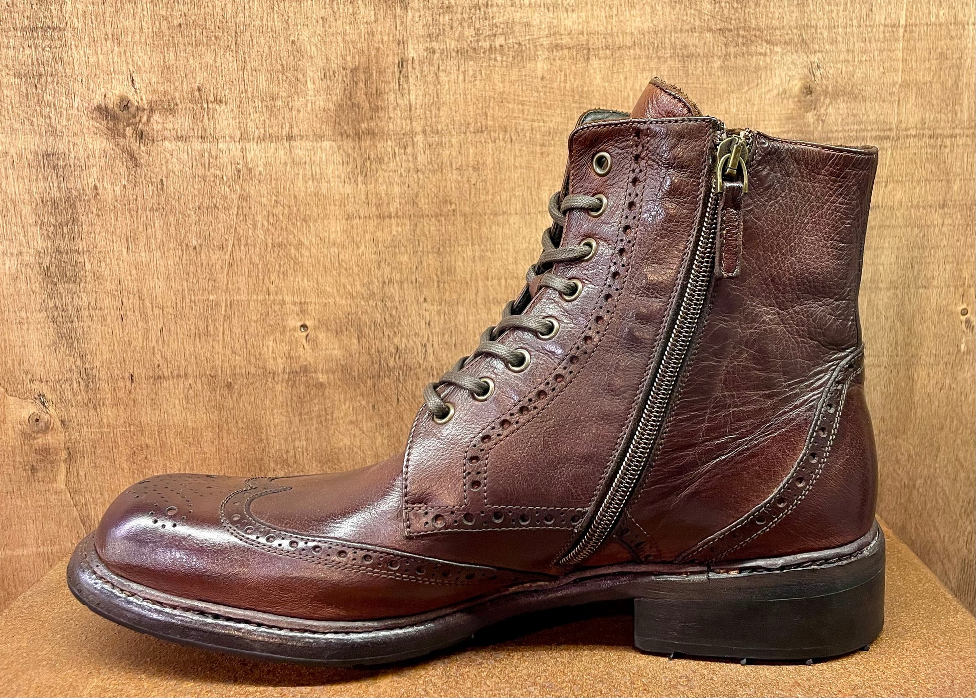Ideato e prodotto interamente in Italia dai nostri artigiani. Questo stivaletto è tra le punte di diamante della nostra collezione. Tomaia e fodera in pregiatissima pelle di vitello conciata con tannini naturali, zip laterale, cucitura blake che assicura suola e tomaia con un unico passaggio, questa tecnica dona estrema flessibilità ed affidabilità nel tempo. Lo stivale nasce senza colore, successivamente viene immerso in speciali vasche e lavato e colorato con sostanze di origine naturale. Facilmente risuolabile, vi accompagnerà nel corso degli anni, acquistando fascino con l'uso quotidiano. La pelle che adoperiamo per la produzione delle nostre scarpe, associata alla tecnica di coloritura naturale, donano un profumo che vi conquisterà non appena avrete aperto la confezione. Lo stesso profumo che sentirete all'interno del nostro negozio se passerete a trovarci. Per la scelta della taglia corretta, a prescindere dall'avere un piede slim, o una pianta larga, il nostro consiglio è di optare per una taglia in meno rispetto alla vostra misura abituale.