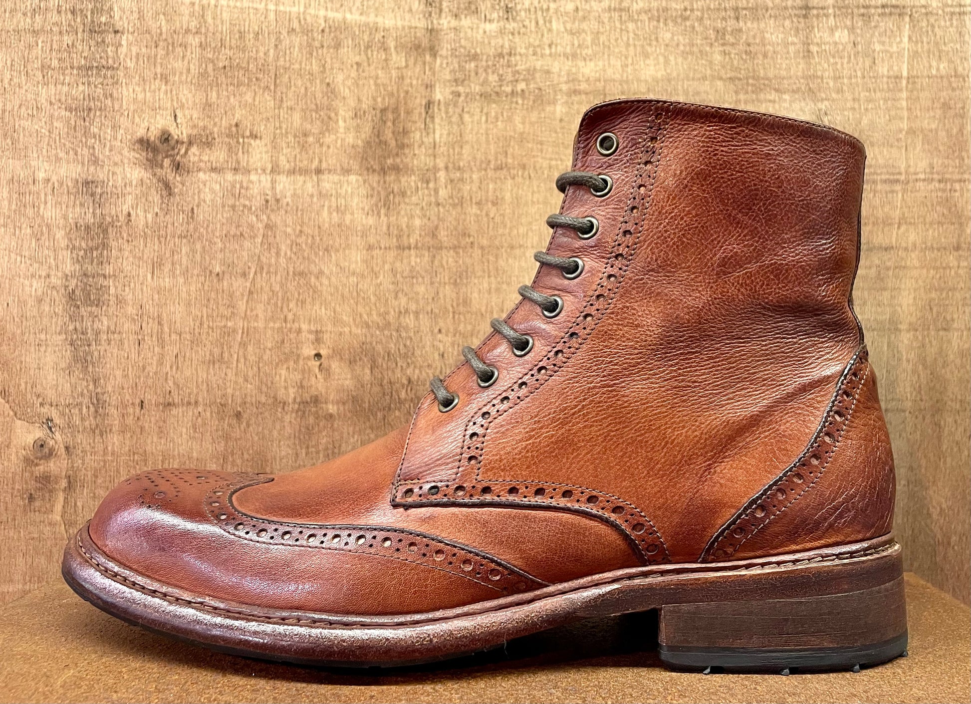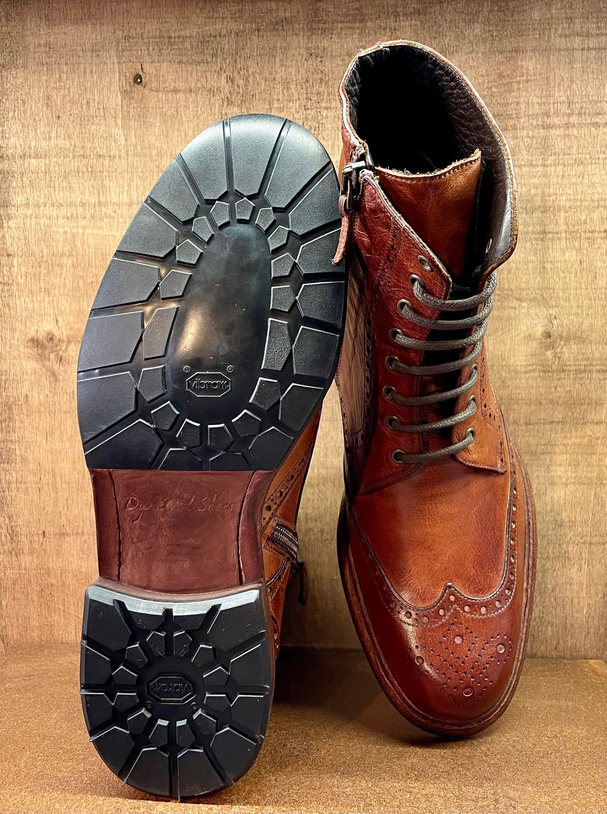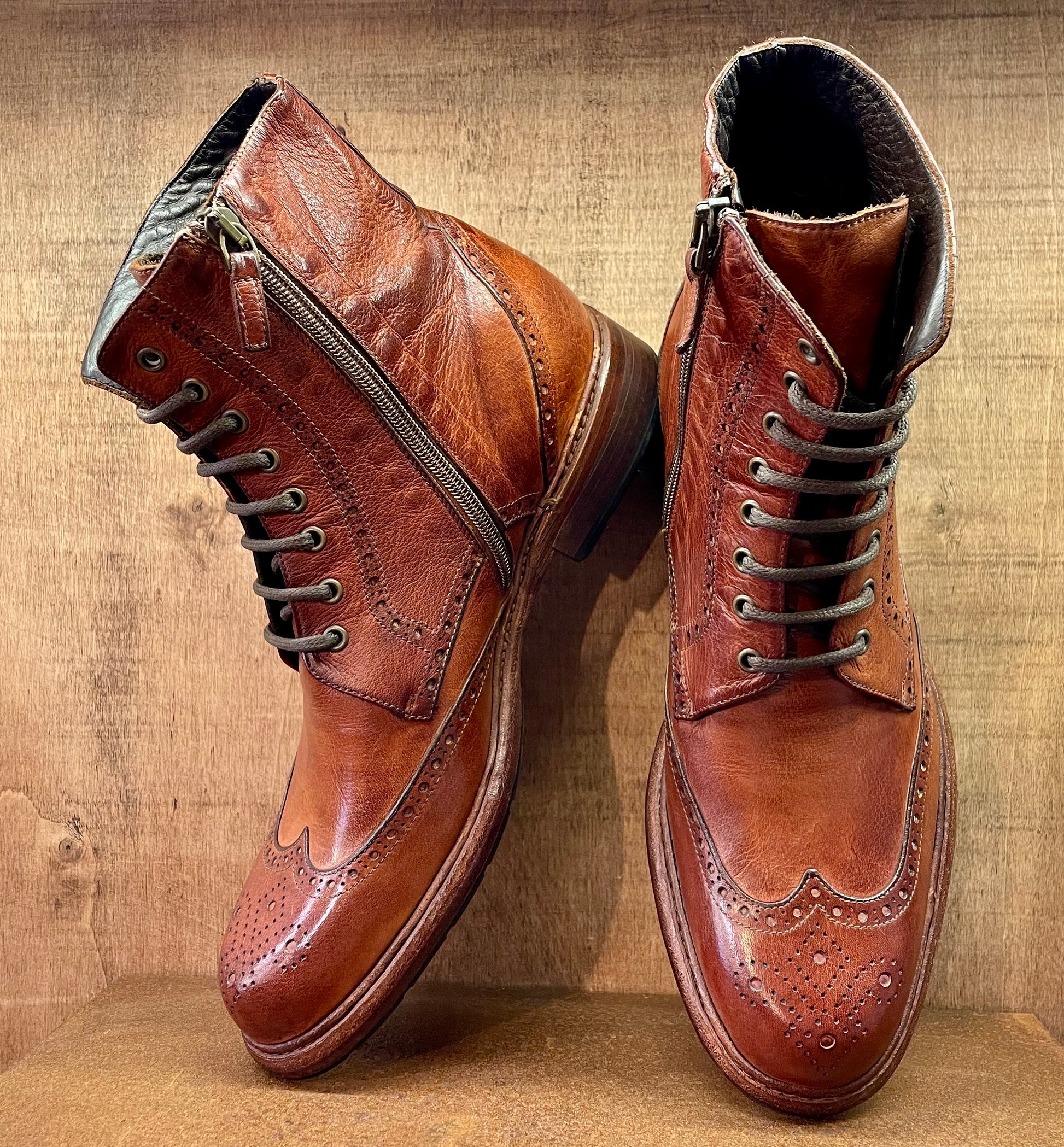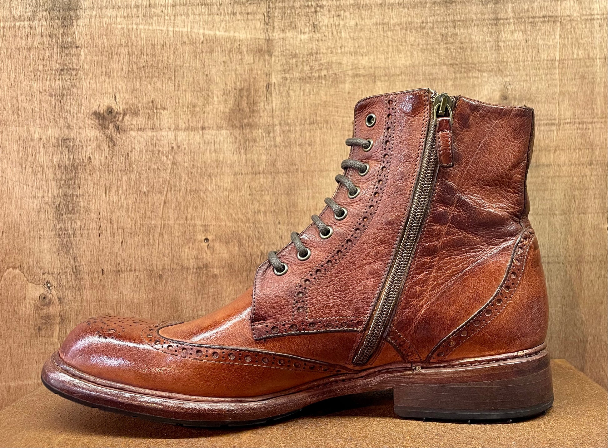 Ideato e prodotto interamente in Italia dai nostri artigiani. Questo stivaletto è tra le punte di diamante della nostra collezione. Tomaia e fodera in pregiatissima pelle di vitello conciata con tannini naturali, zip laterale, cucitura blake che assicura suola e tomaia con un unico passaggio, questa tecnica dona estrema flessibilità ed affidabilità nel tempo. Lo stivale nasce senza colore, successivamente viene immerso in speciali vasche e lavato e colorato con sostanze di origine naturale. Facilmente risuolabile, vi accompagnerà nel corso degli anni, acquistando fascino con l'uso quotidiano. La pelle che adoperiamo per la produzione delle nostre scarpe, associata alla tecnica di coloritura naturale, donano un profumo che vi conquisterà non appena avrete aperto la confezione. Lo stesso profumo che sentirete all'interno del nostro negozio se passerete a trovarci. Per la scelta della taglia corretta, a prescindere dall'avere un piede slim, o una pianta larga, il nostro consiglio è di optare per una taglia in meno rispetto alla vostra misura abituale.