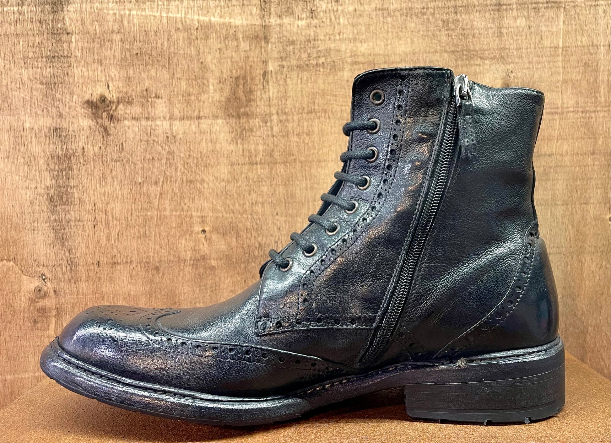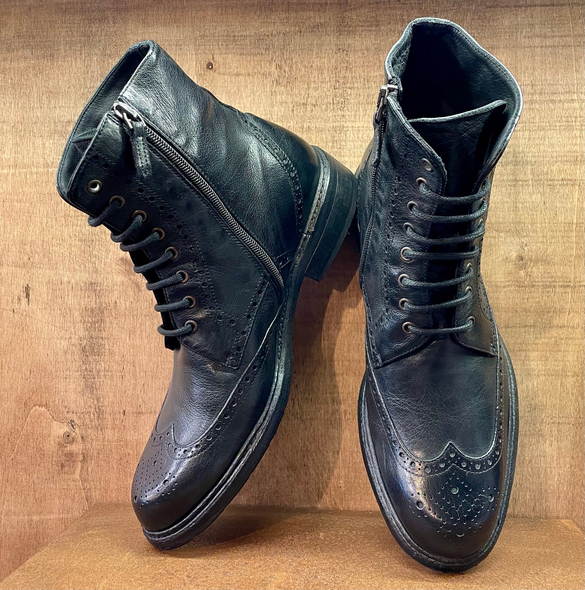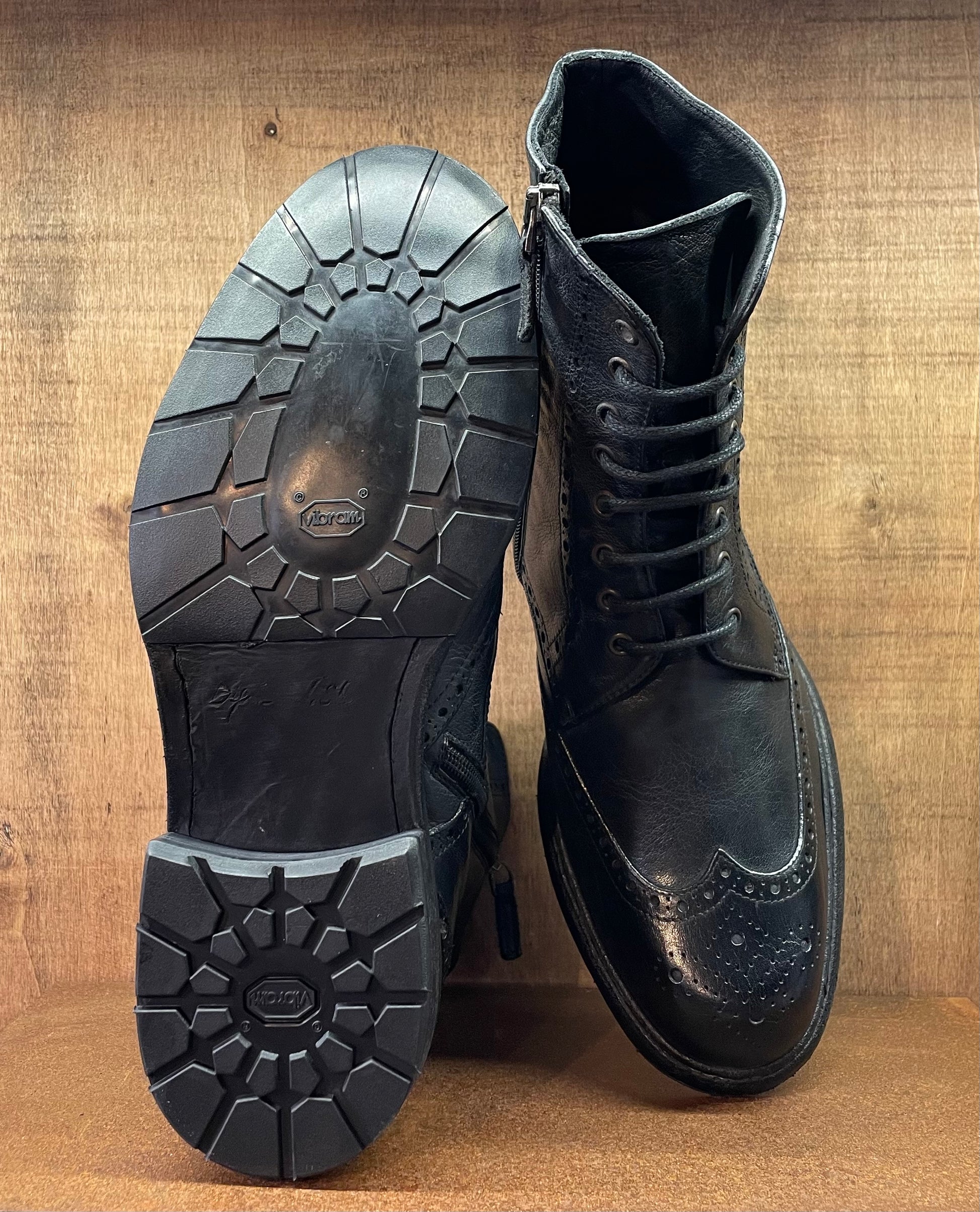 Ideato e prodotto interamente in Italia dai nostri artigiani. Questo stivaletto è tra le punte di diamante della nostra collezione. Tomaia e fodera in pregiatissima pelle di vitello conciata con tannini naturali, zip laterale, cucitura blake che assicura suola e tomaia con un unico passaggio, questa tecnica dona estrema flessibilità ed affidabilità nel tempo. Lo stivale nasce senza colore, successivamente viene immerso in speciali vasche e lavato e colorato con sostanze di origine naturale. Facilmente risuolabile, vi accompagnerà nel corso degli anni, acquistando fascino con l'uso quotidiano. La pelle che adoperiamo per la produzione delle nostre scarpe, associata alla tecnica di coloritura naturale, donano un profumo che vi conquisterà non appena avrete aperto la confezione. Lo stesso profumo che sentirete all'interno del nostro negozio se passerete a trovarci. Per la scelta della taglia corretta, a prescindere dall'avere un piede slim, o una pianta larga, il nostro consiglio è di optare per una taglia in meno rispetto alla vostra misura abituale.