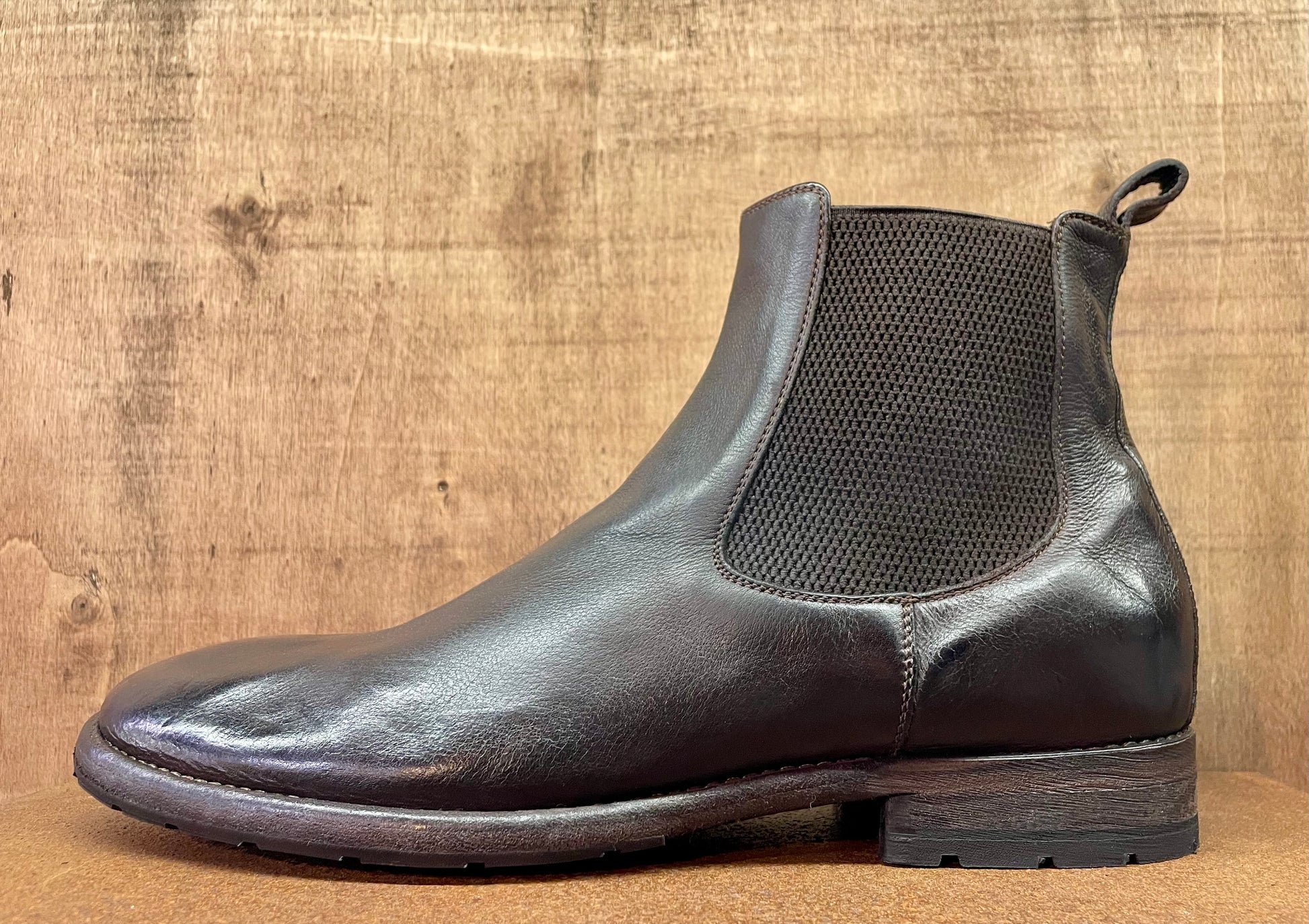 Ideato e prodotto interamente in Italia dai nostri artigiani. Questo stivaletto Chelsea è tra le punte di diamante della nostra produzione. Tomaia e fodera in pregiatissima pelle di vitello conciata con tannini naturali, cucitura blake che assicura suola e tomaia con un unico passaggio, questa tecnica dona estrema flessibilità ed affidabilità nel tempo. Lo stivale nasce senza colore, successivamente viene immerso in speciali vasche e lavato e colorato con sostanze di origine naturale. Facilmente risuolabile, vi accompagnerà nel corso degli anni, acquistando fascino con l'uso quotidiano. La pelle che adoperiamo per la produzione delle nostre scarpe, associata alla tecnica di coloritura naturale, donano un profumo che vi conquisterà non appena avrete aperto la confezione. Lo stesso profumo che sentirete all'interno del nostro negozio se passerete a trovarci. Per la scelta della taglia corretta, a prescindere dall'avere un piede slim, o una pianta larga, il nostro consiglio è di optare per una taglia in meno.