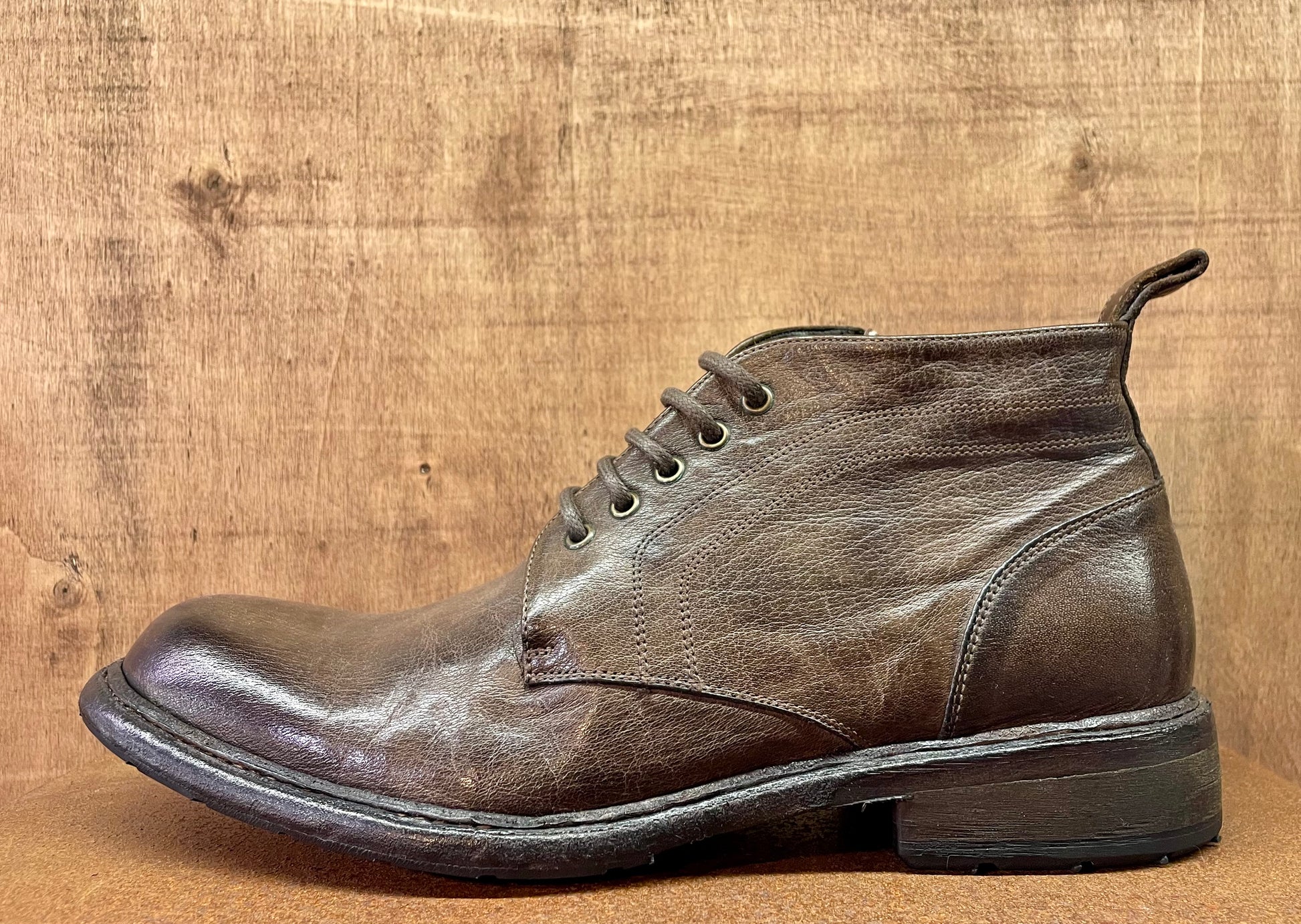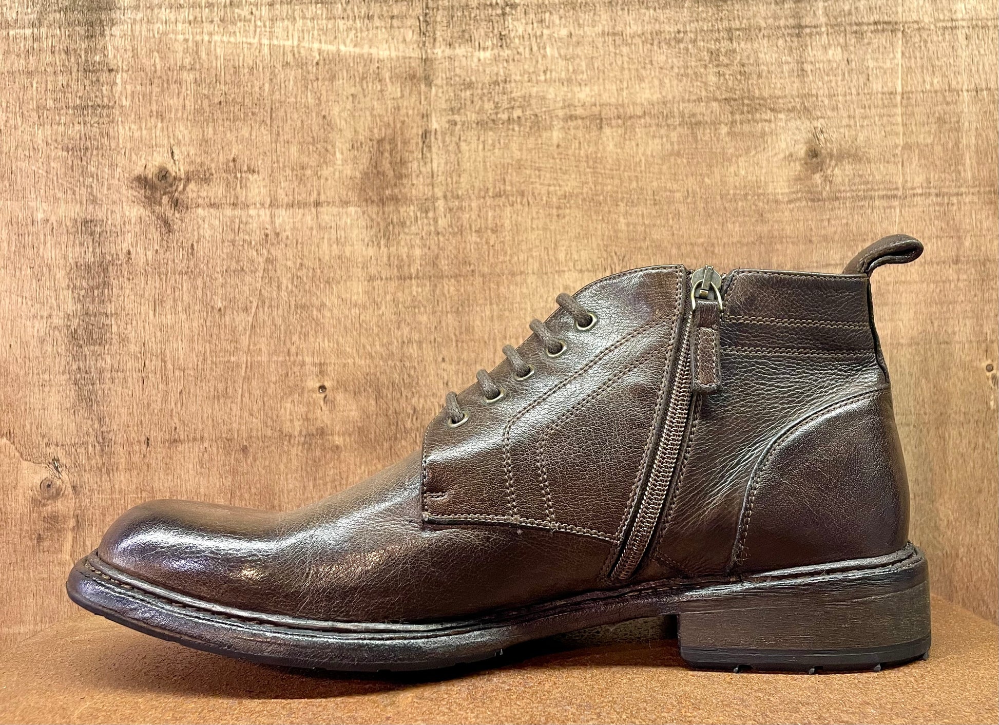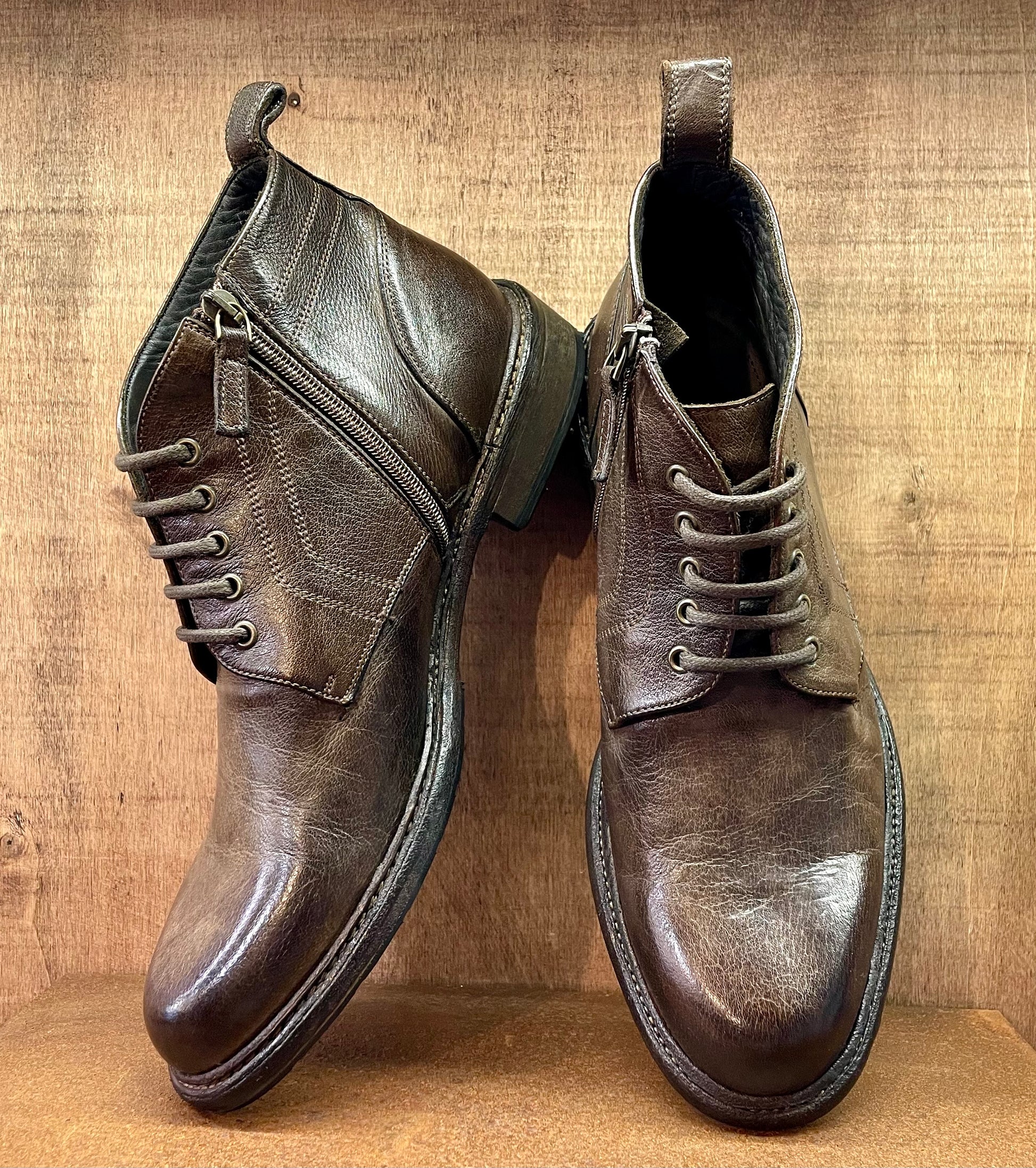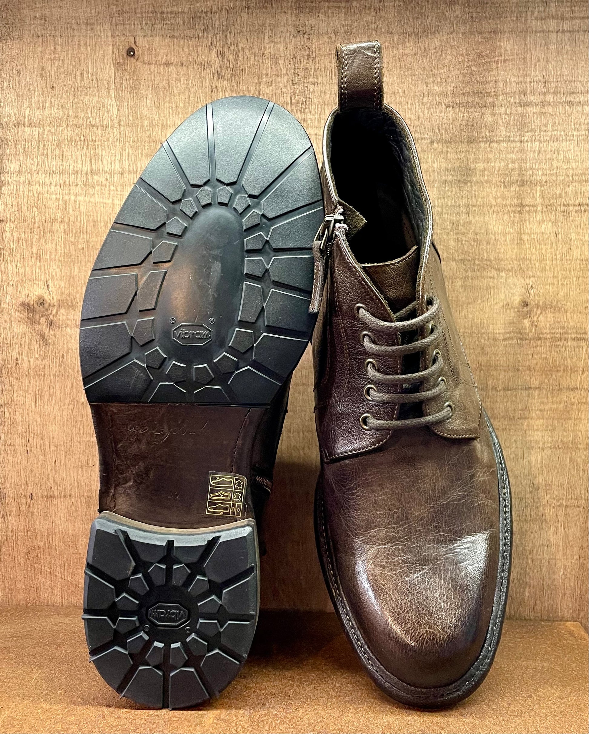 Ideato e prodotto interamente in Italia dai nostri artigiani. Questa polacchina è tra le punte di diamante della nostra collezione. Tomaia e fodera in pregiatissima pelle di vitello conciata con tannini naturali, zip laterale, cucitura blake che assicura suola e tomaia con un unico passaggio, questa tecnica dona estrema flessibilità ed affidabilità nel tempo. La scarpa nasce senza colore, successivamente viene immersa in speciali vasche e lavata e colorata con sostanze di origine naturale. Facilmente risuolabile, vi accompagnerà nel corso degli anni, acquistando fascino con l'uso quotidiano. La pelle che adoperiamo per la produzione delle nostre scarpe, associata alla tecnica di coloritura naturale, donano un profumo che vi conquisterà non appena avrete aperto la confezione. Lo stesso profumo che sentirete all'interno del nostro negozio se passerete a trovarci. Per la scelta della taglia corretta, a prescindere dall'avere un piede standard, o una pianta larga, il nostro consiglio è di optare per una taglia in meno rispetto alla vostra misura abituale.